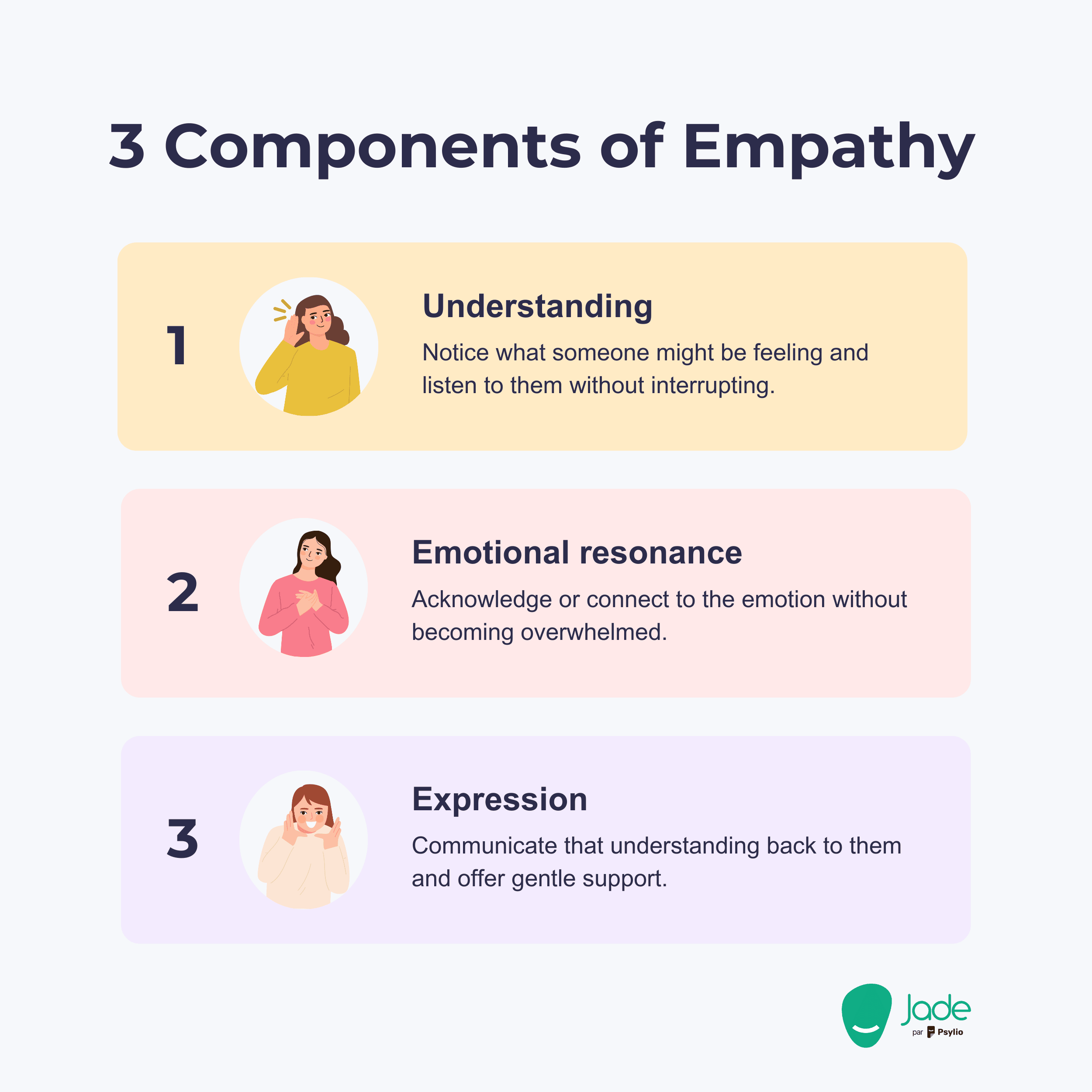 Psychologists describe empathy as understanding someone's emotional experience while recognizing that it is separate from your own. You're trying to imagine their perspective—not replace it or assume you know exactly how they feel.